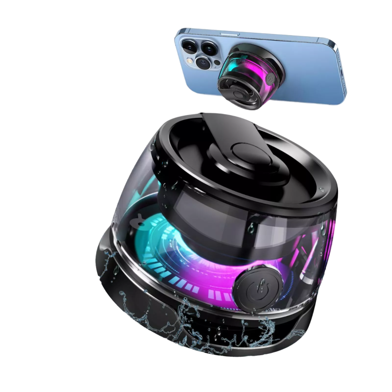 الاسبيكر مزود بقواعد ممغنطة يعني قابل للصق على اي سطح معدني🧲