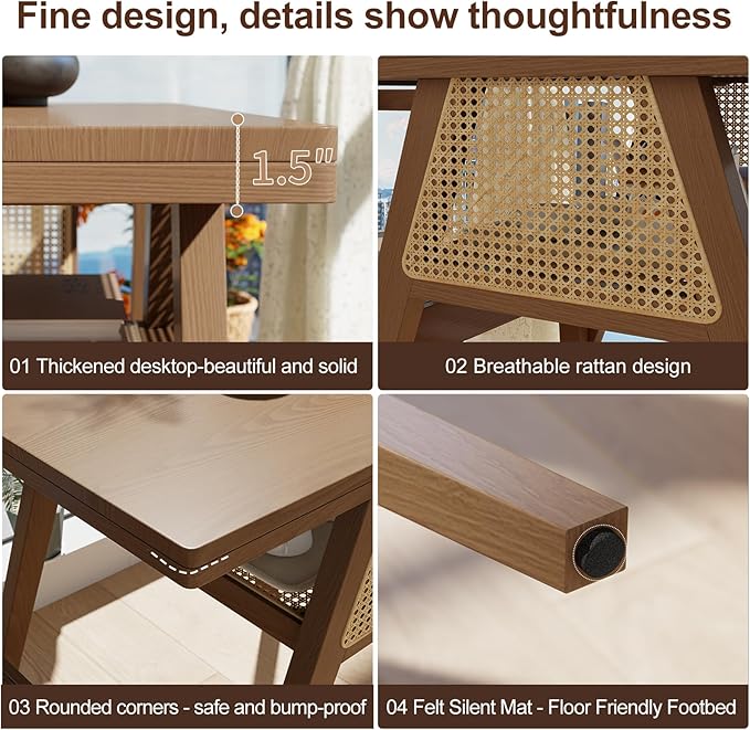 تأتي مع سطح سميك بسمك 1.5 مم مع شبكة من الخيزران لتعطي لمسة جمالية و تهوية جيدة مع زوايا مستديرة لتجنب الصدمات وقاعدة مزودة بوسائد لينة لتحمي الأرضيات من الاحتكاكات