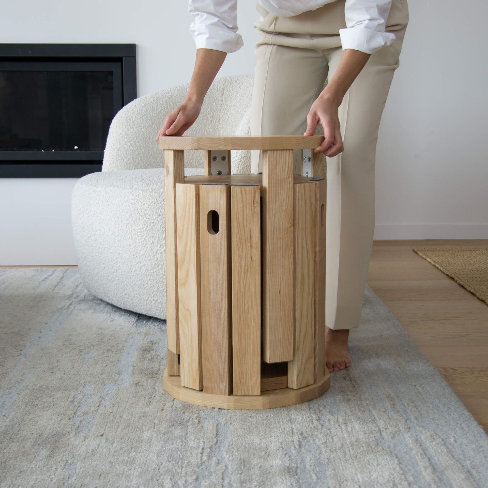 لو عندك المساحة صغيرة وعايز حاجة شيك وعملية وسهلة التخزين يبقى لازم تجرب الكرسي 4×1! تصميمه الذكي بيخليك تستخدمه ككرسي او كطاولة جانبية او حتى حامل للديكور وكمان بيتخزن بسهولة من غير ما ياخد مكان🪵