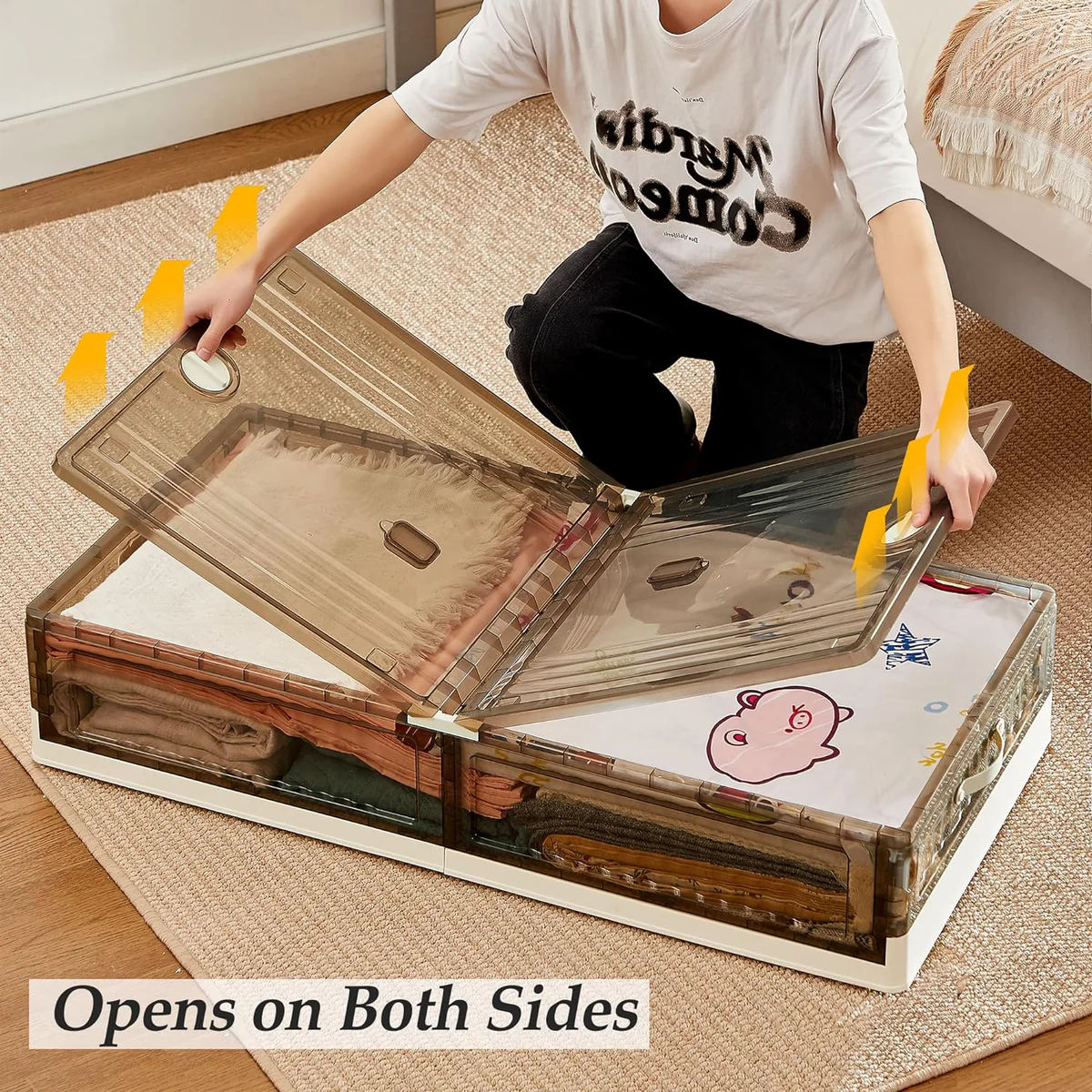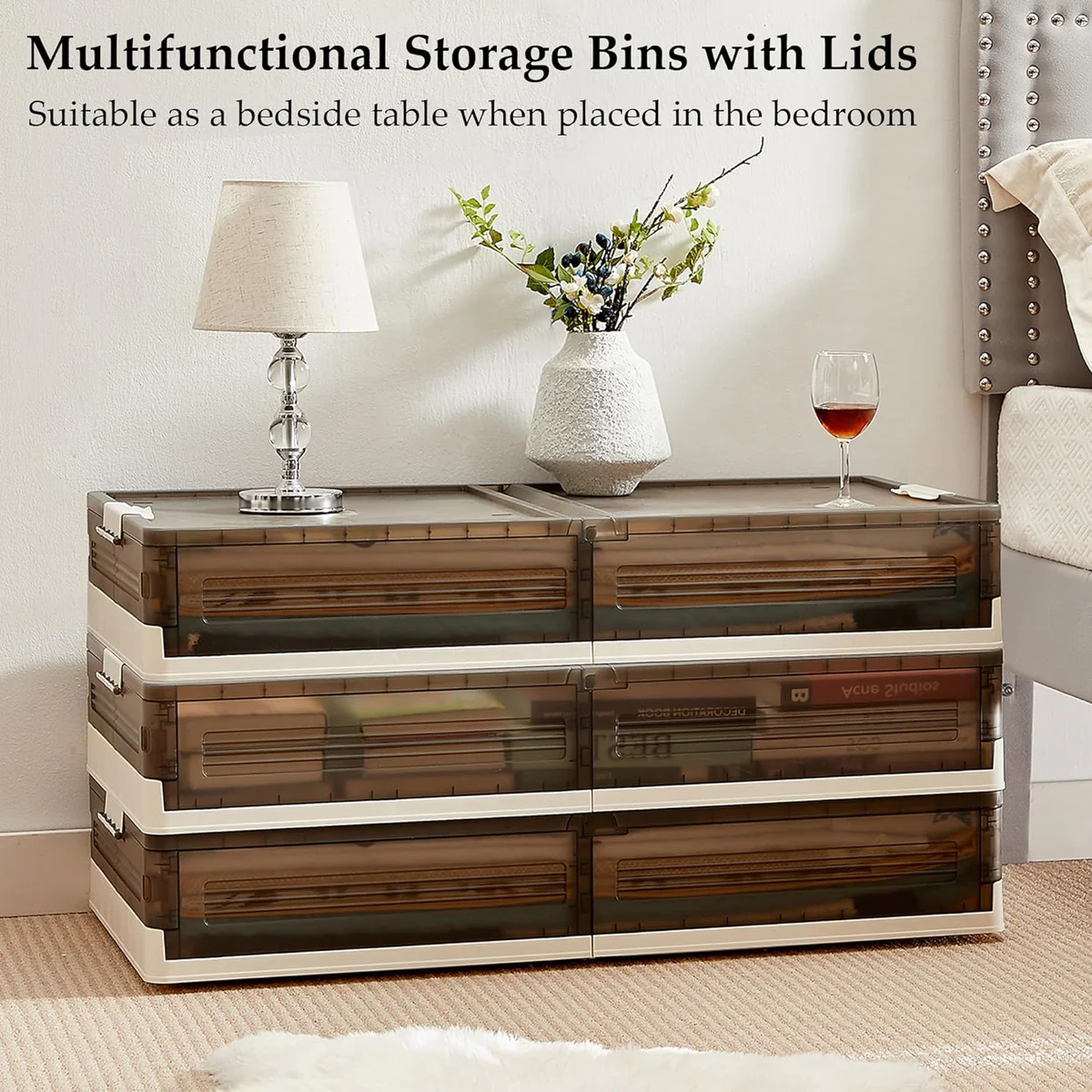 بلاستيك قوي – 6 عجلات سلسة – غطا قابل للقفل – شفاف لترتيب اسرع – قابل للطي لتوفير المساحة