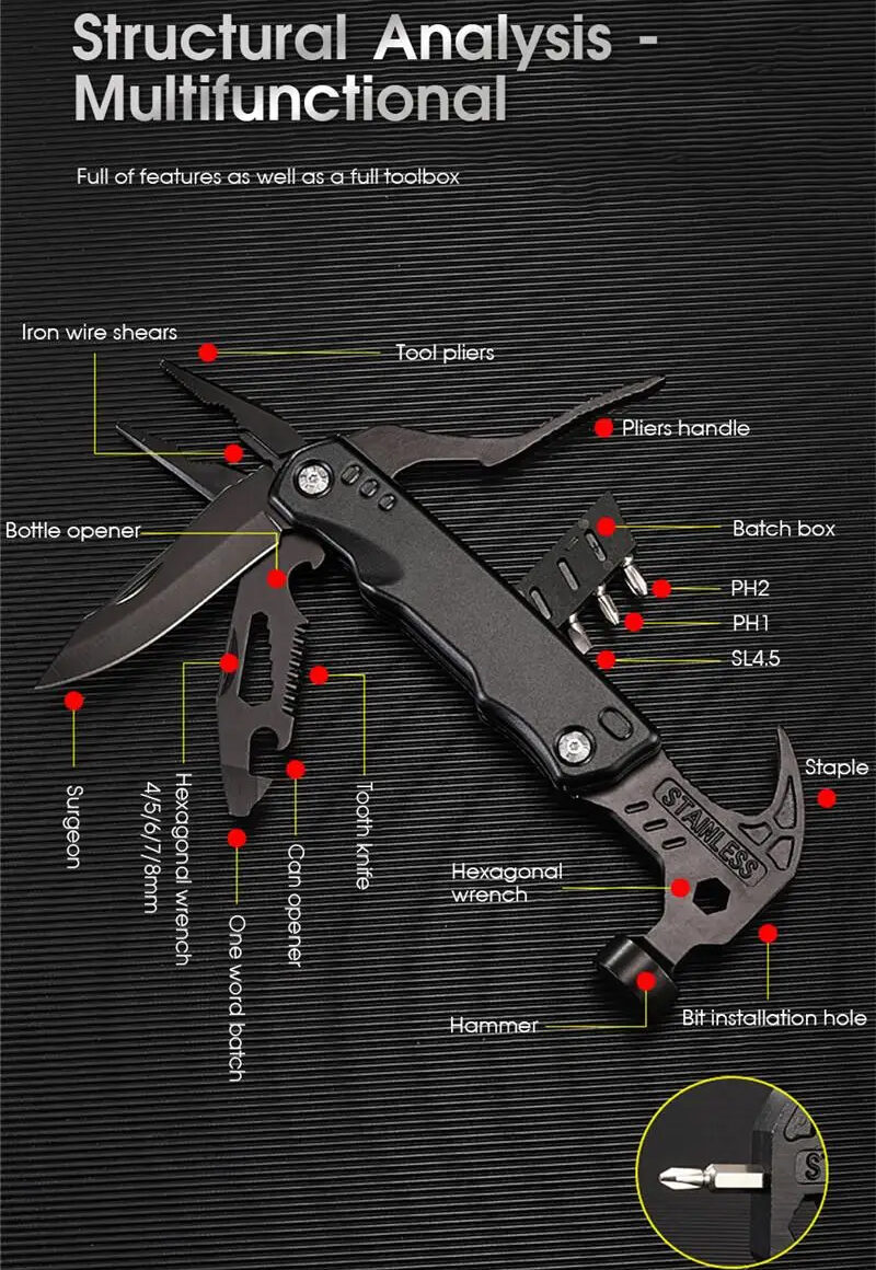 عدة صيانة كاملة في أداة واحدة عبقرية هتوفرلك 12 استخدام 🧰 (شاكوش ، بنزة ، مفتاح ربط ، فتاحة علب ، سكين ، منشار ، مبرد ، مفك براغي ، كماشة ، مفك صليبة ، مفك عادي ، مفتاح امريكاني ) يعني سواء كنت صنايعي او مستخدم عادي فالاداة دي ضرورية تكون في بيتك لأنها هتوفر عليك كتير سواء في المساحة او الفلوس او راحة البال وخلاص مش هتستلف من جارك او صاحبك كل شوية 👌